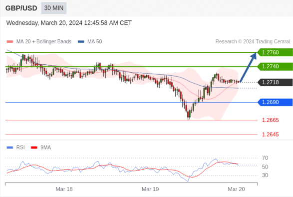 在 1.2690 之上,看涨,目标价位为 1.2740 ,然后为 1.2760 。
