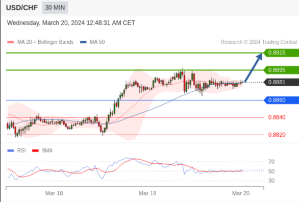 在 0.8860 之上,看涨,目标价位为 0.8895 ,然后为 0.8915 。