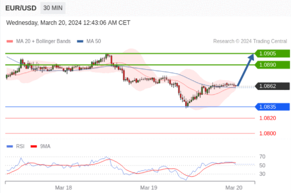 在 1.0835 之上,看涨,目标价位为 1.0890 ,然后为 1.0905 。