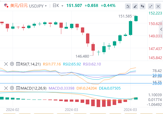 今天的预期交易区间在150.60支撑位和152.10阻力位之间