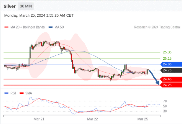 在 24.95 之下,看跌,目标价位为 24.45 ,然后为 24.25 。