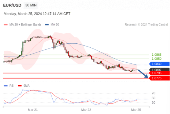 在 1.0830 之下,看跌,目标价位为 1.0795 ,然后为 1.0775 。