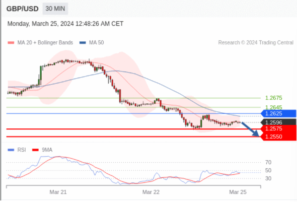 在 1.2625 之下,看跌,目标价位为 1.2575 ,然后为 1.2550 。