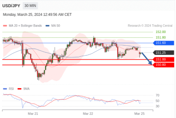 在 151.60 之下,看跌,目标价位为 151.00 ,然后为 150.80 。