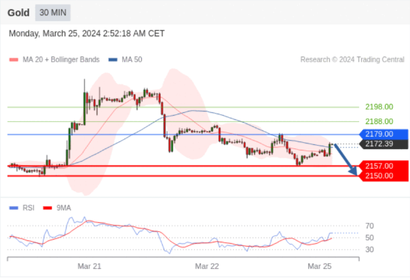 在 2179.00 之下,看跌,目标价位为 2157.00 ,然后为 2150.00 。
