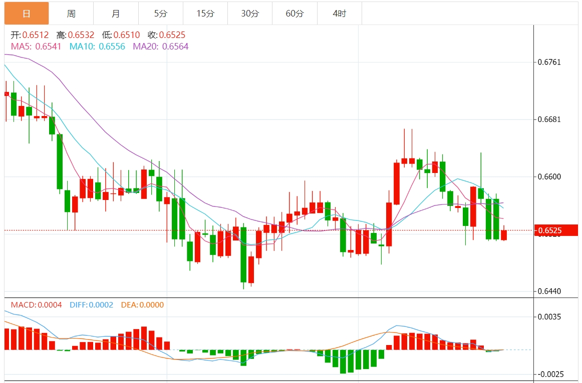 技术分析:澳元徘徊在0.6540下方,其次是23.6%斐波那契
