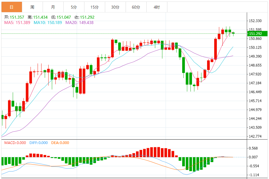 周一(3月25日),美元/日元下跌,暂报151.315,跌幅0.07%。