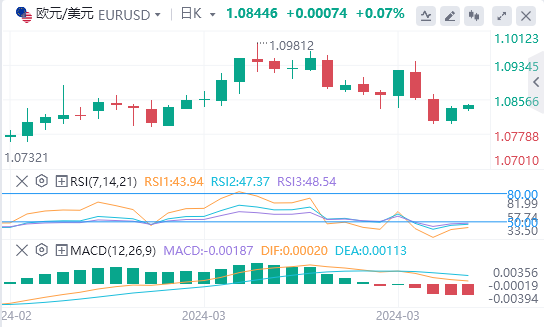 欧元/美元昨日反弹,守住1.08的支撑位上方,如果涨势持续,欧元/美元可能会涨向1.09-1.0950。