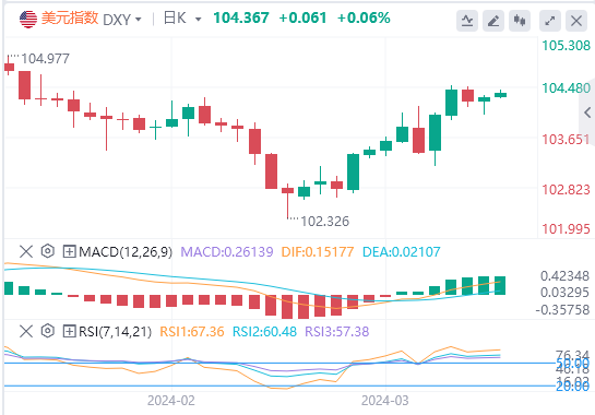 3月27日,周三欧市盘前,美元指数维持日内反弹走势,目前位于104.40附近;美元/日元交投在151.65附近,受日本官员干预警告影响,该货币对已经自逾30年高位151.97回落。本文对美元指数、欧元、英镑、日元、澳元汇率日内走势进行预测。