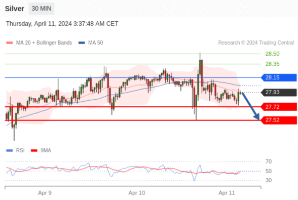 在 28.15 之下,看跌,目标价位为 27.72 ,然后为 27.52 。
