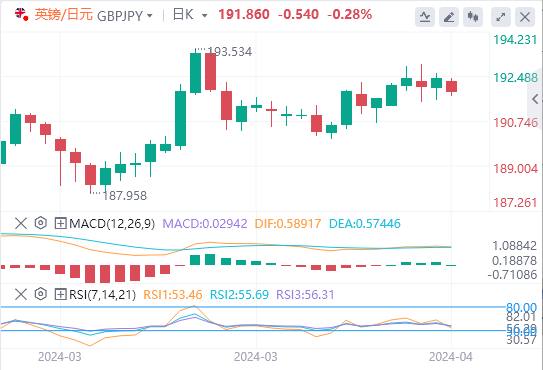 英镑/日元一直横盘交易,收于192.00点附近。保持在191.15的次要牛市通道支撑线上方,可以确认192.55和192.85水平的牛市情景。
