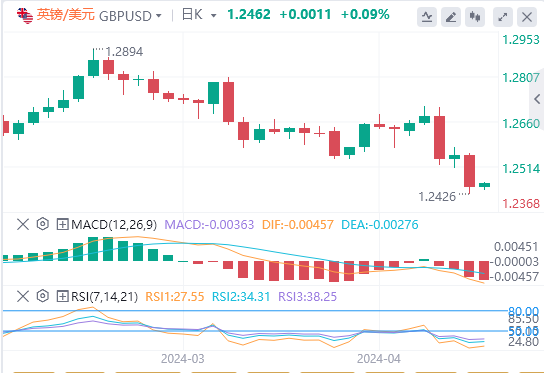 在1.24有直接支撑,短期内可能会守住,并在接下来的几个交易日反弹至1.25/2550。