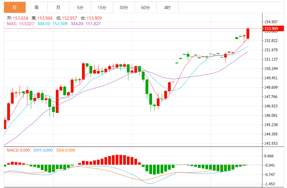 支撑位:153.48 153.57 153.68