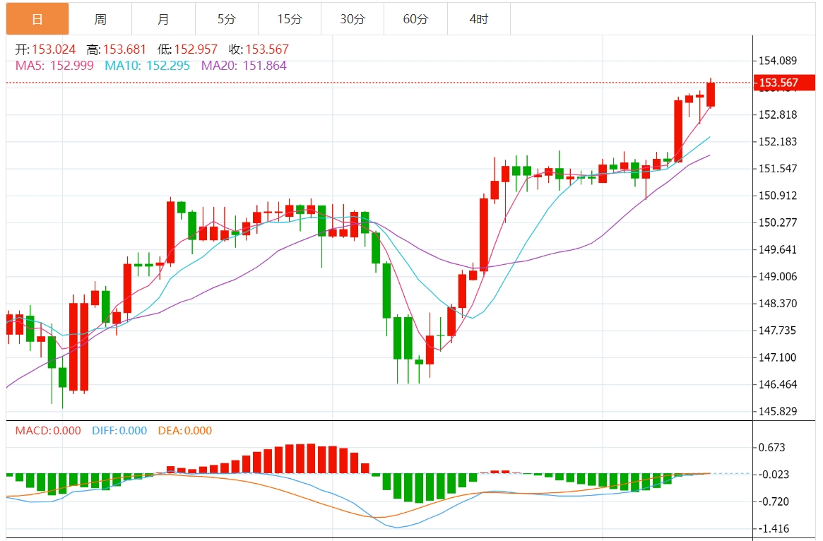 周一欧盘,因日元疲软,美元/日元徘徊于153.83附近,澳元/美元徘徊于0.6483附近,日内市场关注美国恐怖数据。