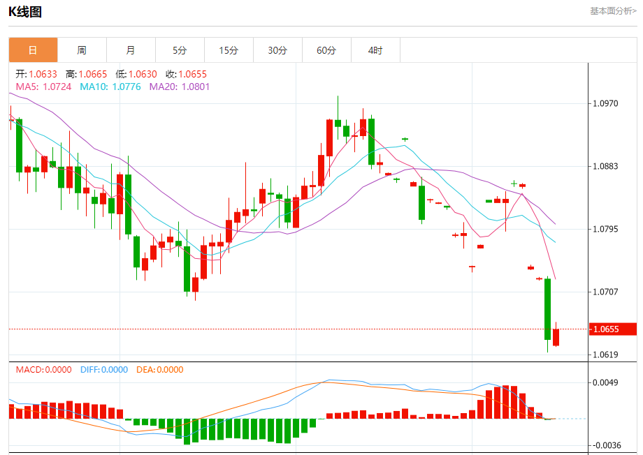 汇价高见1.0665,低见1.0630。上一交易日,汇价收于1.0641。