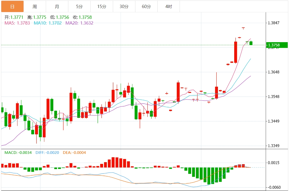 技术分析:美元/加元贬值至1.3750附近