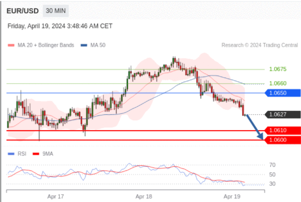 在 1.0650 之下,看跌,目标价位为 1.0610 ,然后为 1.0600 。