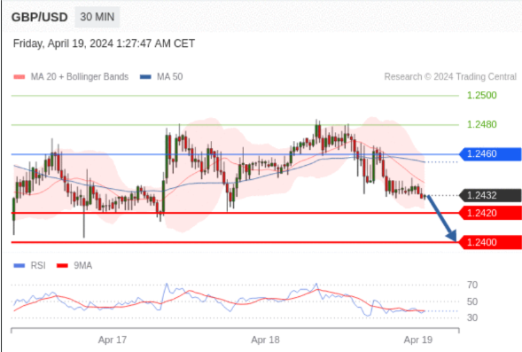 在 1.2460 之下,看跌,目标价位为 1.2420 ,然后为 1.2400 。