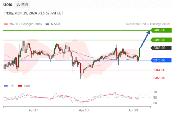 在 2375.00 之上,看涨,目标价位为 2398.00 ,然后为 2409.00 。