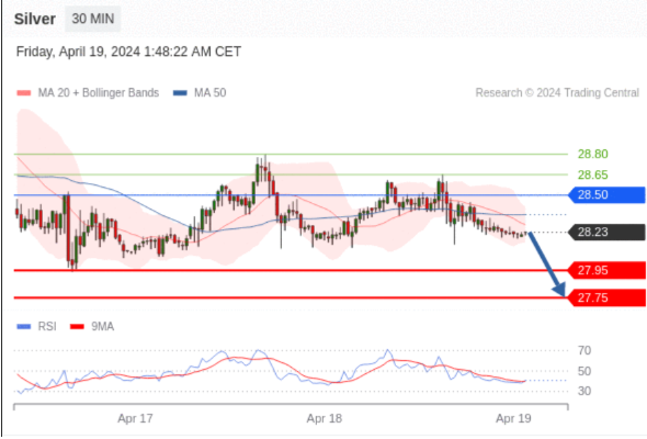 在 28.50 之下,看跌,目标价位为 27.95 ,然后为 27.75 。