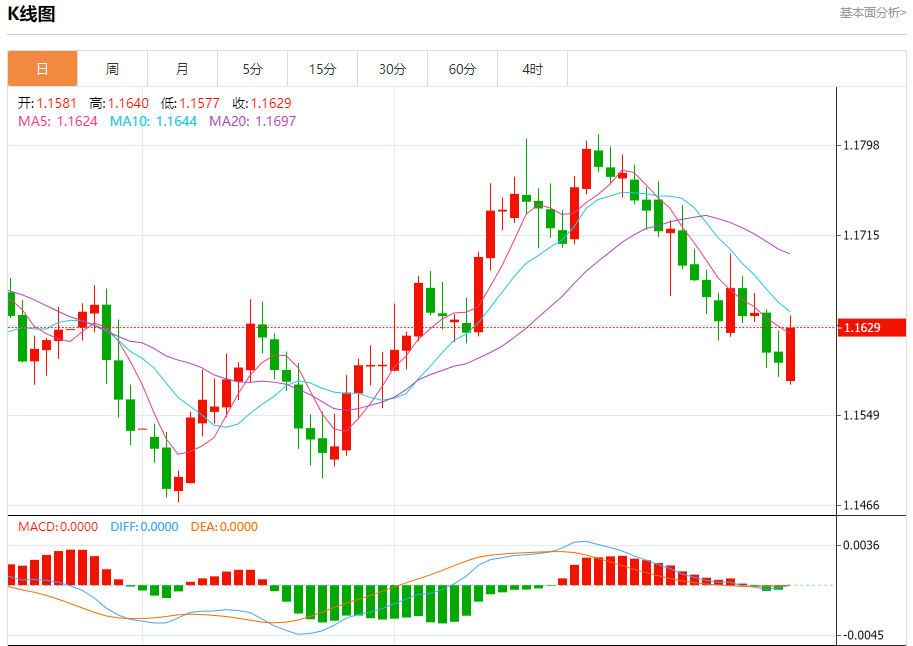 汇价高见1.1640,低见1.1577。上一交易日,汇价收于1.1598。