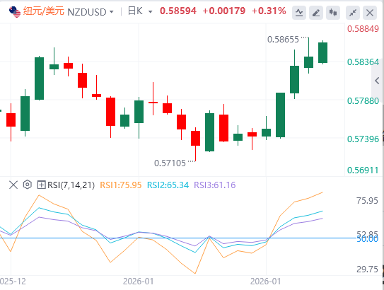 1月22日,纽元/美元连续第五个交易日持续上涨,周四欧洲早盘交易约0.5860。随着纽元(NZD)在美国总统唐纳德·特朗普表示将停止对反对其占领格陵兰努力的欧洲国家商品征收关税后,纽元(NZD)获得支持,货币对有所回升。