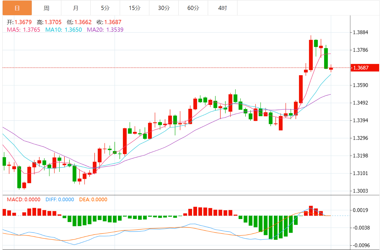 下方支撑位于1.3600附近,一旦跌破该区域,日线结构可能转向更深层次的技术性修正。整体来看,当前走势更符合高位震荡而非趋势反转特征。