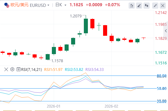 在美伊周五结束一轮谈判后,关于中东可能发生冲突的担忧有所缓解。这反过来又拉动了追踪避险美元兑一篮子货币的美元指数(DXY),从上周四触及的两周高点回落,成为欧元兑美元汇对的重要顺风因素。此外,美国联储(Fed)与欧洲央行(ECB)利率路径的分歧也支持该货币对短期内获得额外收益。