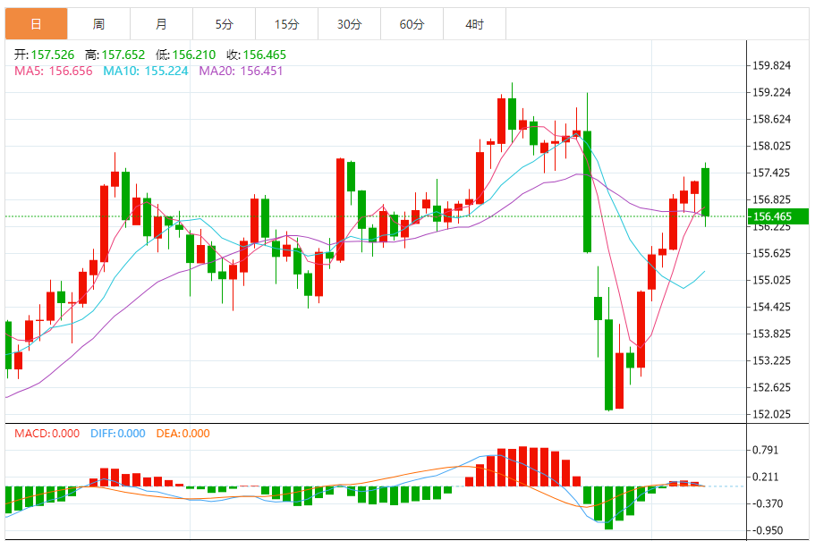 短期平均线仍高于中期平均线,趋势背景支持下跌,尽管盘整可能持续,九日均线保持平稳。若日收盘价高于该短期均线1.1822,可能推动继续上涨至约1.2082区间,该区为自2021年6月以来的最高水平。