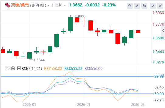 下行方面,直接支撑位于九日均线1.3655。跌破短期均线将削弱动能,暴露上升通道约1.3570的下界,随后出现50日均线1.3513。进一步下跌将对英镑兑美元汇率造成下行压力,测试1.3350附近的支撑反转区。