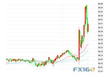 美元指数飙升,日内涨幅扩大至逾0.6%,最高触及98.69,随后快速回落近30点至98.42附近。