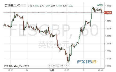 周五(9月6日)欧市盘中,英镑/美元位于1.2300一线附近徘徊。上一交易日汇价一路飙升上扬至1.2353高点,之后于该点下方不远处窄幅整理交投。本交易日目前来看,汇价似乎有加速走低之势,目前自日高已下跌近50点至1.2295。