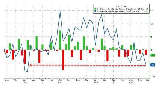 经济数据方面,美国隔夜最新公布的耐用品订单和新屋销售数据均表现不及预期。其中,美国11月耐用品订单月率下跌2.0%,录得5月以来新低,预期增长1.5%,前值增长0.5%;美国11月耐用品订单年率下跌5.7%,为2016年7月以来最低水平。11月美国制造的资本耐用品订单几乎没有增长,出货量下降,这表明第四季度商业投资可能仍将拖累经济增长。