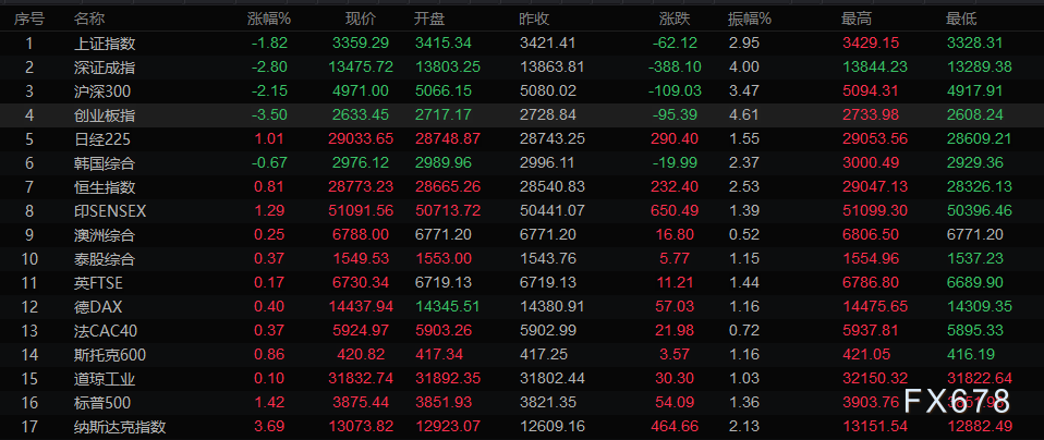 美国股市方面,逢低买盘推动纳斯达克100指数创下去年11月以来最大涨幅,投资者重返风险资产。标普500指数上涨1.4%,报3875.44点;道琼斯工业平均指数上涨0.1%,报31832.74点;纳斯达克综合指数上涨3.7%,报13073.824点。纳斯达克100指数上涨4%,报12794.49点。