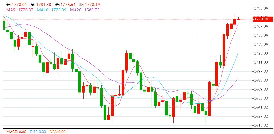 周二(11月15日),现货黄金走势震荡,多次拉升突破1780关口,盘中一度失守1770美元,美股午盘后受避险需求推动止跌转涨,短线拉升超15美元突破1785美元/盎司,最终收涨0.38%,报1778.28美元/盎司。现货白银盘中突破22美元关口,但随后大幅走低,最终收跌1.91%,报21.56美元/盎司。