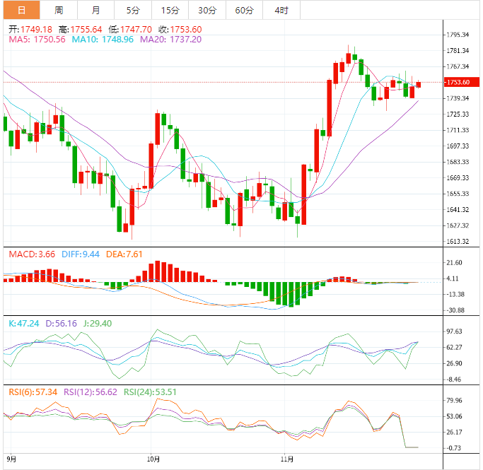 现货黄金:截止发稿,现货黄金小幅上涨,现报1753.58,涨幅0.22%,欧市盘前,黄金价格在1748.00美元附近有意义的反弹后,目标转移到1,750美元上方。在美联储主席杰罗姆·鲍威尔发表讲话之前,美元指数出现波动,贵金属已经感受到购买兴趣。这一次,美联储主席的讲话具有重大影响,因为投资者将获得加息步伐放缓的暗示。