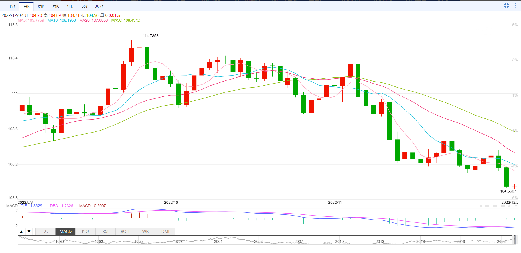 支撑位:104.22 103.73 102.83