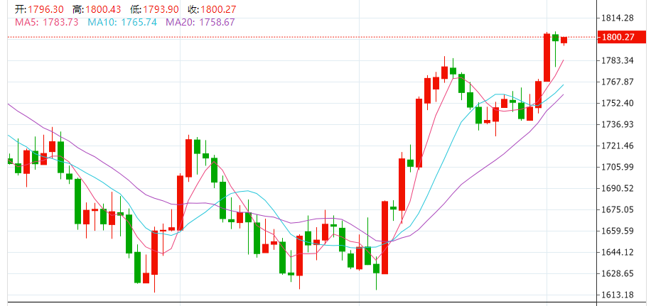 上周五(12月2日),大宗商品曾因美元反弹承压大幅下行,现货黄金一度从1800上方跌至1778附近,随后大幅拉升再度逼近1800关口,最终收跌0.29%,报1797.75美元/盎司。现货白银跌至22.26后大幅飙升突破23美元关口,最终收涨1.73%,报23.15美元/盎司。