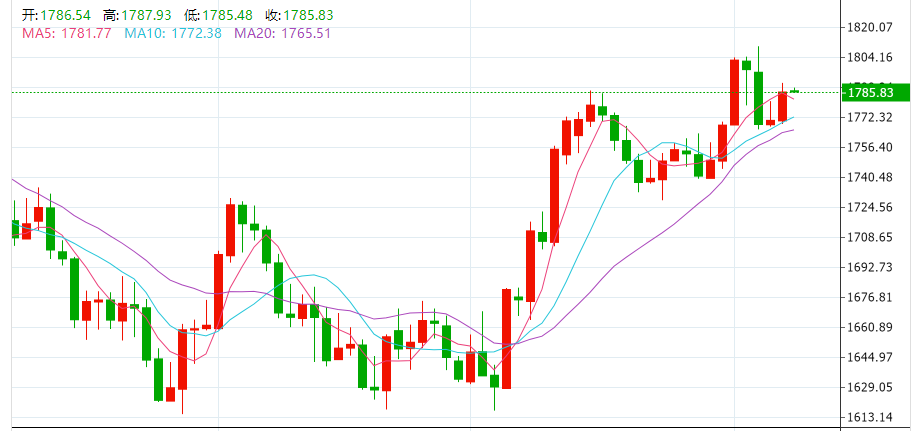 周三(12月7日),现货黄金盘中向上触及1790美元/盎司,现货白银逼近23美元关口。截止收盘,现货黄金收涨0.85%,报1786.14美元/盎司;现货白银收涨2.43%,报22.73美元/盎司。