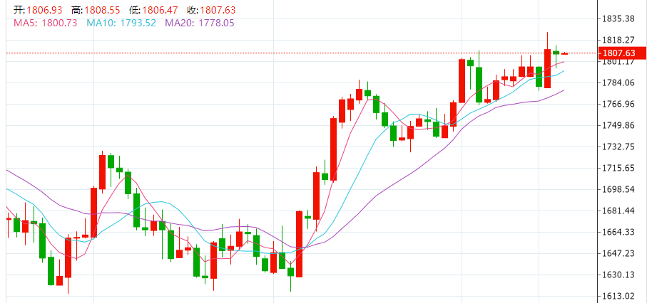 周三(12月14日),美联储宣布加息后,现货黄金短线跳水14美元,短暂跌破1800关口,随后再度回到1810上方,鲍威尔讲话后有所回落,最终收跌0.18%,报1807.44美元/盎司。现货白银失守24美元关口,收涨0.88%,报23.94美元/盎司。