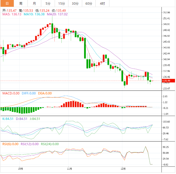 本交易日将是一个超级交易日,欧洲央行利率决议和英国央行将携手来袭,市场预计均加息50个基点,此外,本交易日还将出炉美国11月零售销售数据(俗称“恐怖数据”)、美国11月工业产生数据和初请失业金人数变动数据,市场对美国零售销售数据的预期不佳,令美元指数面临进一步下行风险;不过,美元指数在6月16日低点103.41附近支撑较强,需要重点关注。