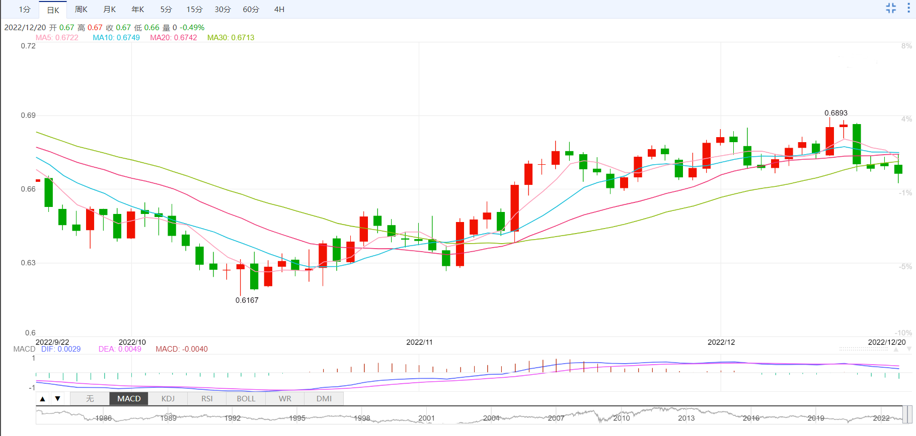 路透社报导称,澳储行在12月的政策会议上考虑维持利率不变,理由是迄今为止激进紧缩政策效应出现滞后,以及不确定环境下谨慎行事有好处。澳储行董事会在今年的最后一个决议的决策当中考虑三个选择,即加息50个基点、25个基点或暂停加息,但加息25个基点的观点佔据上风。澳元/美元在0.6665附近刷新盘中低点,逆转周初的反弹行情,空头回归。接近0.6895的月度高点和0.6900的整数位可以充当额外的上行障碍,之后将指引澳元兑美元指向8月高点0.7135附近。