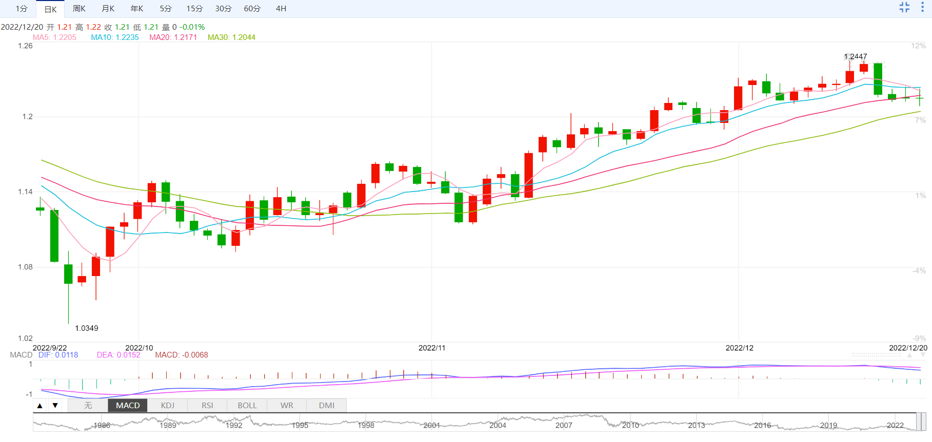 欧元/美元经历最新震盪后依然徘徊于1.0600附近,汇价在周二欧市早盘自盘中高点回撤。在担忧不一以及数据清淡的背景下,该货币对的最新行情可能与美元震盪有关。目前对于欧元兑美元空头来说,必须日线收盘于10日MA均线1.0585下方。相反,自11月30日以来的先前支撑线1.0655构成短期上行阻力。不过RSI疲软以及MACD信号看跌加上价格未能突破先前支撑线令空头充满希望。