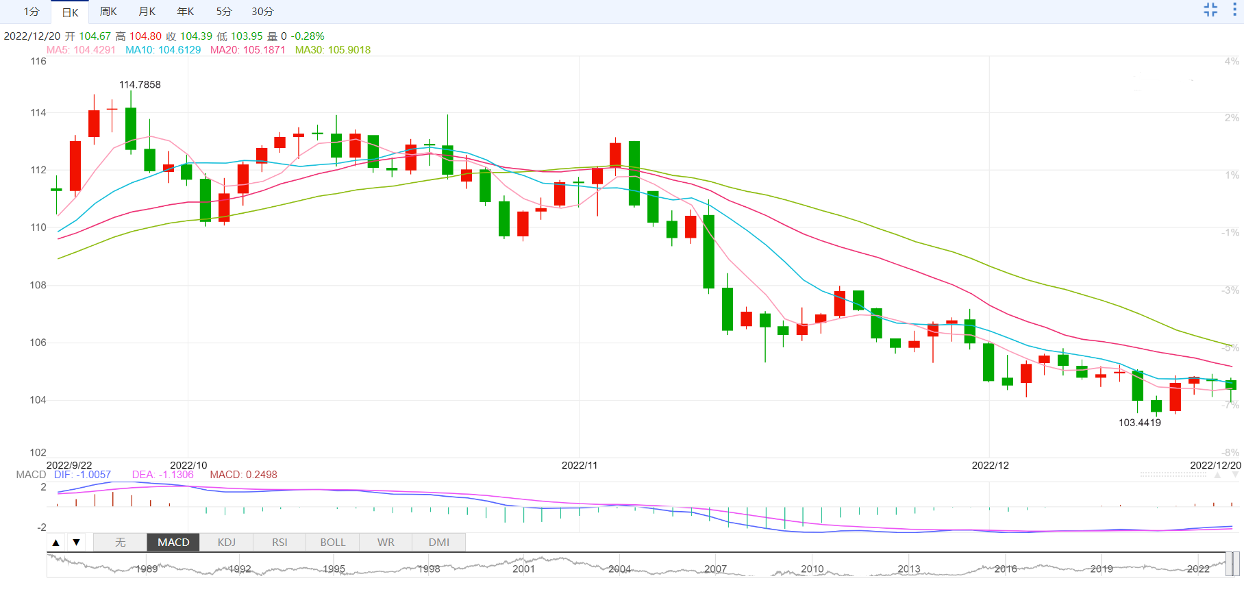 支撑位:104.39 104.02 103.83