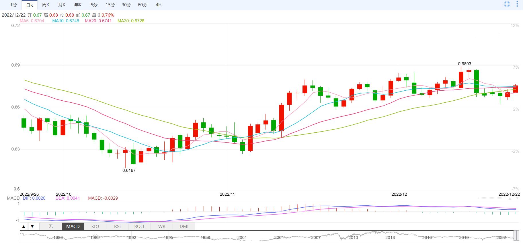 周四盘中,美元指数下跌至103.89,跌幅0.36%;欧元兑美元上涨至1.0643,涨幅0.36%;英镑兑美元上涨至1.2122,涨幅0.34%;美元兑日元下跌至131.84,跌幅0.37%;澳元兑美元上涨至0.6754,涨幅0.75%。
