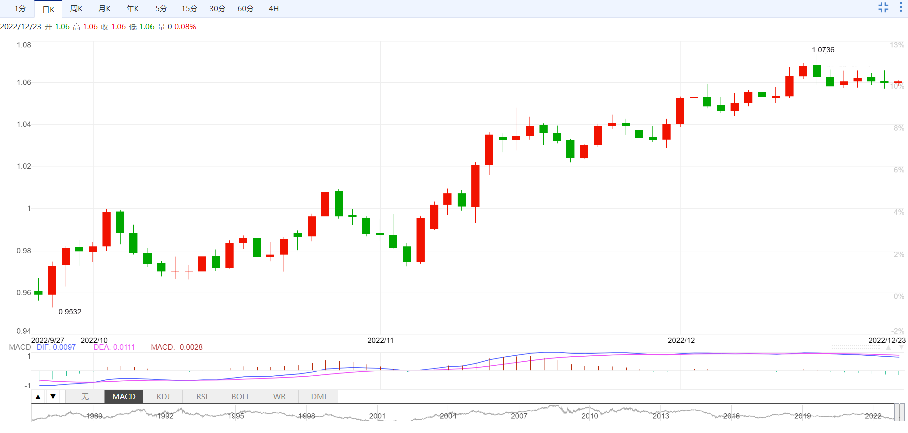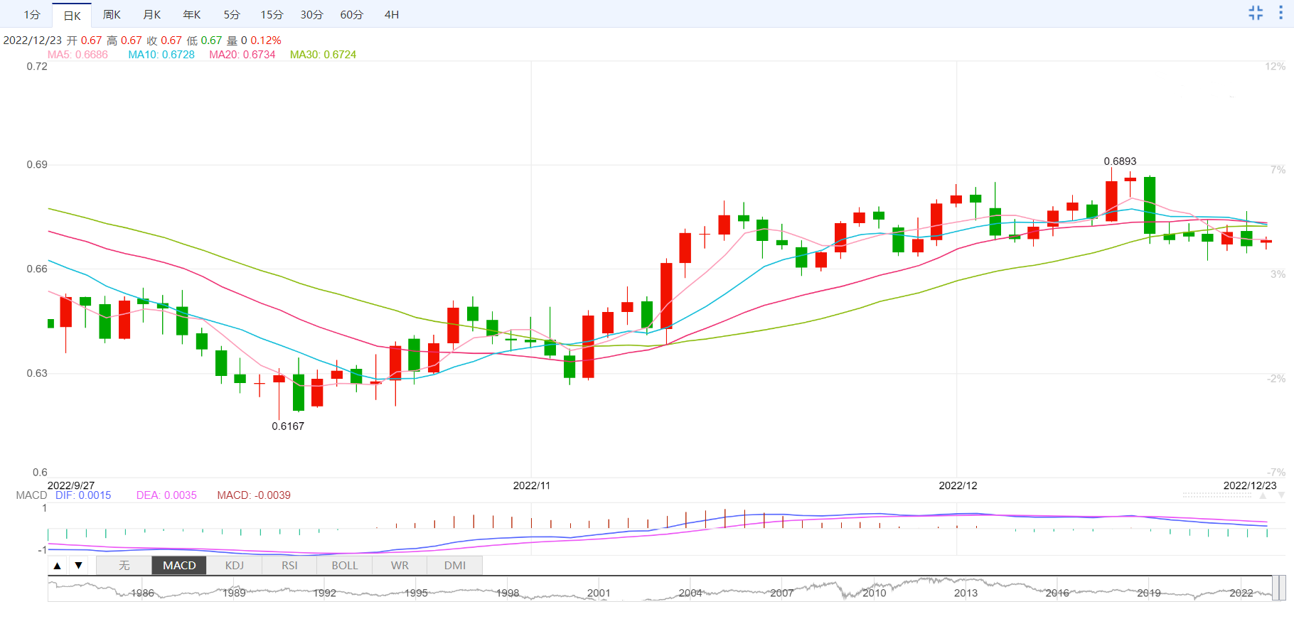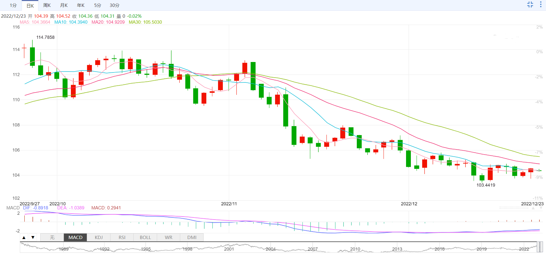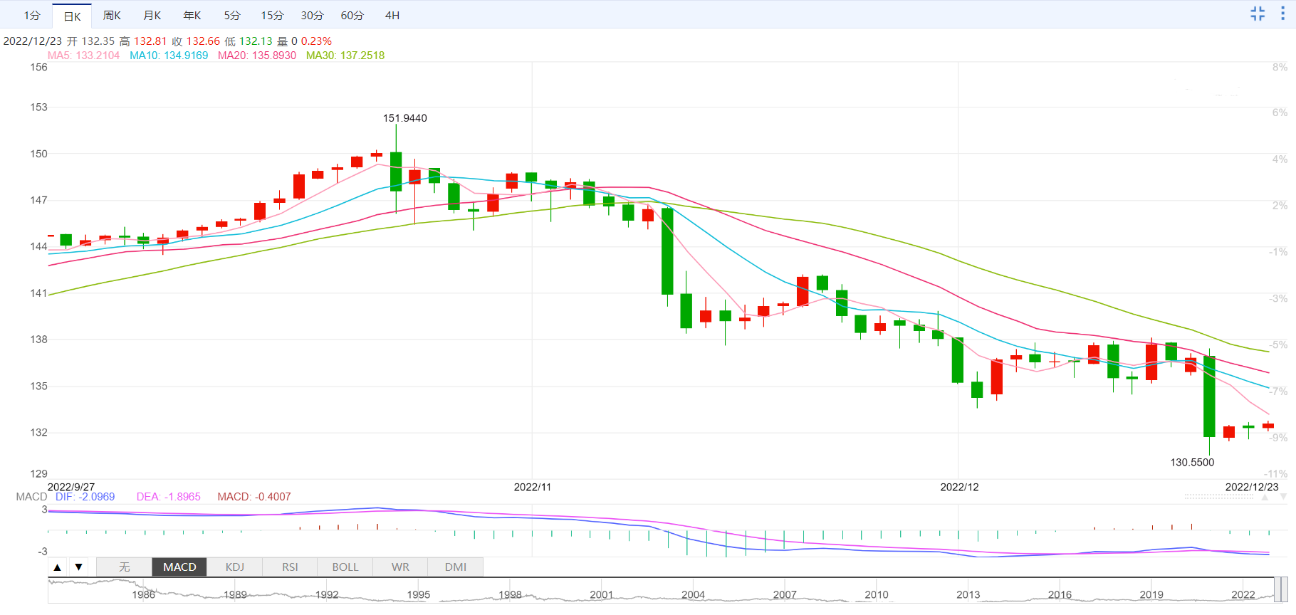 美元/日元当日持平于132.40附近,并延续12月下旬以来的下行趋势,接近130.60。周四美元走强,但以美元指数兑一篮子货币衡量的美元指数迄今未能有效地收复週二日本央行微调货币政策后出现的跌幅3.8%。然而美国经济数据支持美联储鹰派倾向。周五公布的日本数据显示,日本11月份核心消费者价格指数年率上升3.7%。剔除波动较大的生鲜食品但涵盖石油价格核心消费者价格指数录得3.7%,符合市场预期。