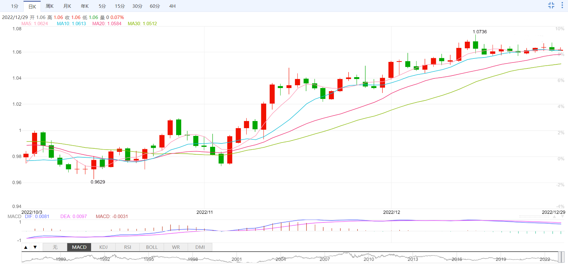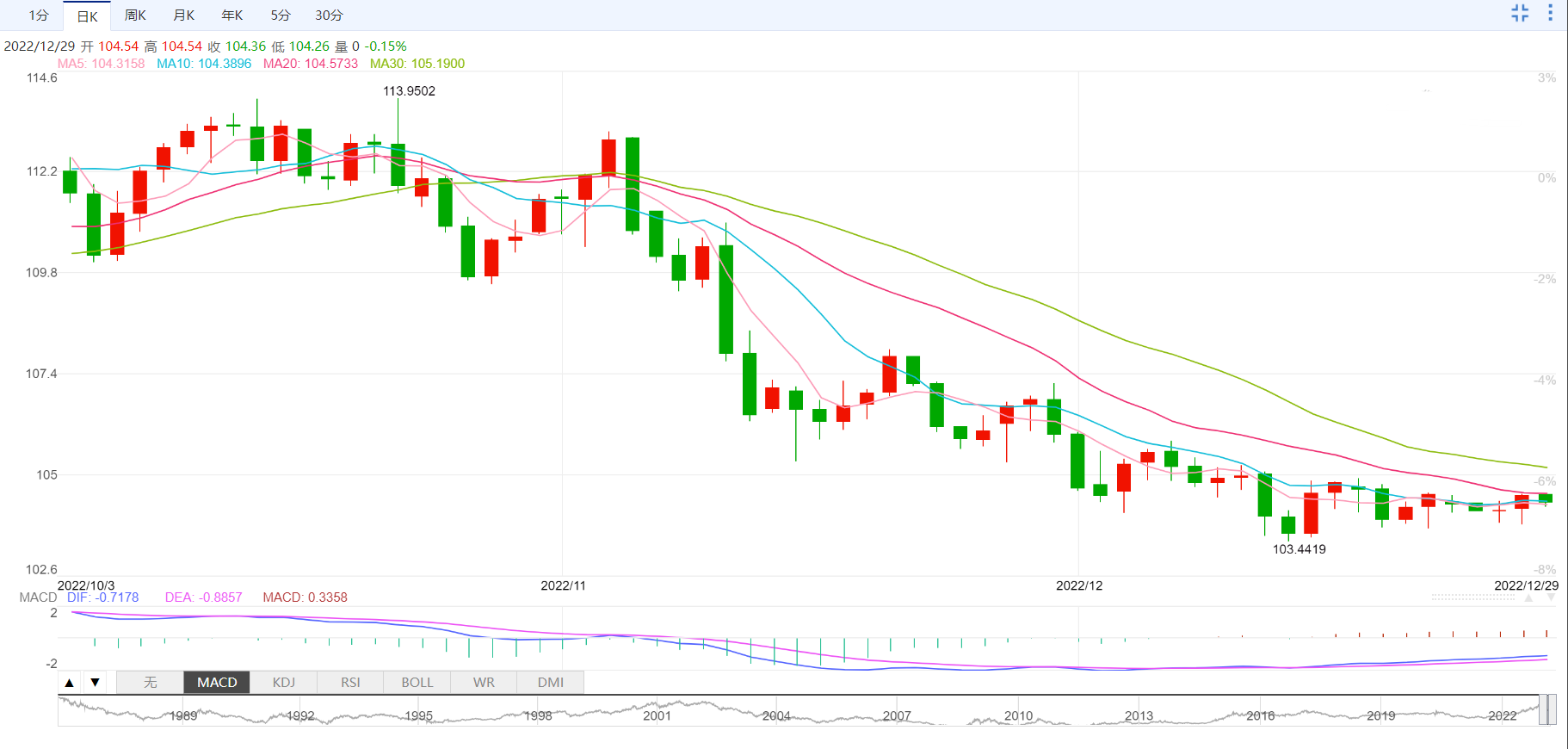 美元指数:截止发稿,美元指数下跌,现报104.40,跌幅0.12%。欧市盘前,美元指数整理于四日高位104.56附近,正获得支撑。标普500指数期货未现反弹,表明整体市场维持避险情绪。而10年期美债收益率已跌破3.86%。美国11月成屋签约销售指数下滑未能影响美元指数。全美房地产经纪人协会公佈的数据显示,美国11月季调后成屋签约销售指数月率录得-4%,预期为0.6%。美国家庭似乎正在放弃购买住房的计划,以避免更高的利息负担,而更愿意支付租金。
