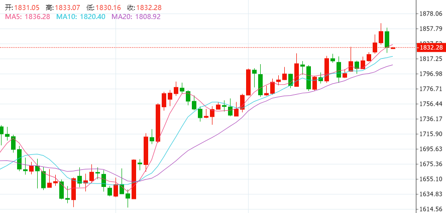 周四(1月5日)由于美元和美债收益率双双走高,现货黄金止住四日连创至少半年新高之势,在ADP就业数据公布之前就开始走弱,数据公布后更是短线下挫超7美元,随后扩大跌幅,一度跌破1830美元并回吐前2个交易日涨幅,收跌1.18%,报1832.7美元/盎司;现货白银新年3个交易日连续下跌,收跌2.21%,报23.24美元/盎司。