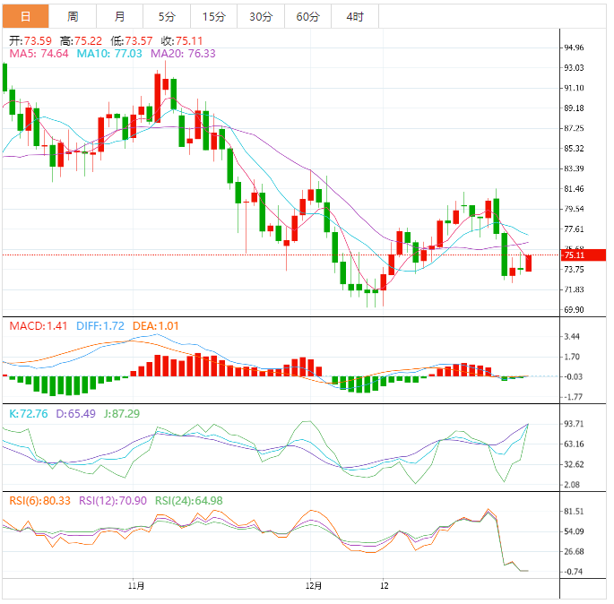 阻力位:75.21 76.54 77.42
