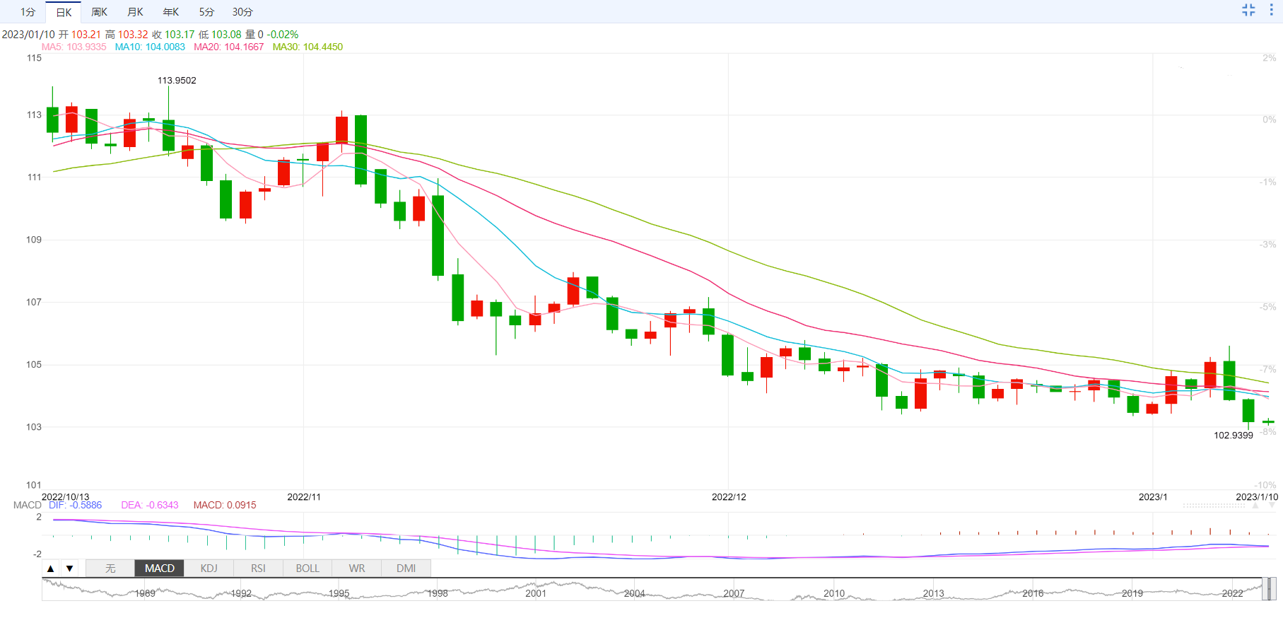 美元兑其他主要货币周二在七个月低点附近徘徊,目前交投于103.24附近,因投资者认为美联储加息周期可能接近尾声,同时中国的重新开放也推动对风险资产的需求。